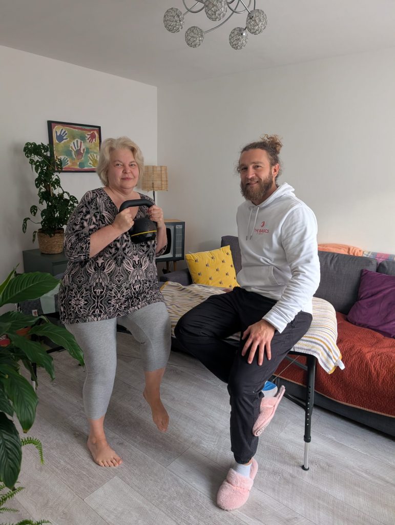 Exercise is always tailored to your ability, comfort, and goals. For some people, it begins with very simple movements such as supported sit-to-stand from a chair, gentle walking, or mobility drills. For others—such as younger clients or those with fewer restrictions—we may start with more structured strength or cardiovascular exercise straight away.